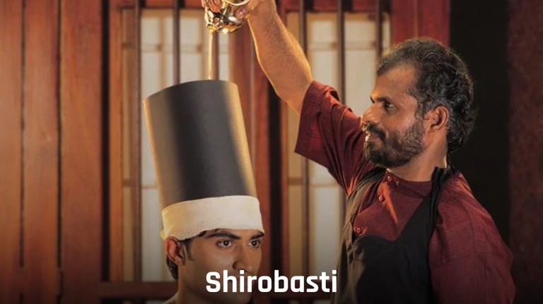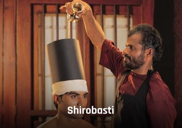 Shirovasti is for the treatment of ear issues and Vata-based damage to the cranial nerves. For this, a leather sleeve placed on the shaven head of the patient is fixed in place with kneaded dough, and oil is poured continuously into it.