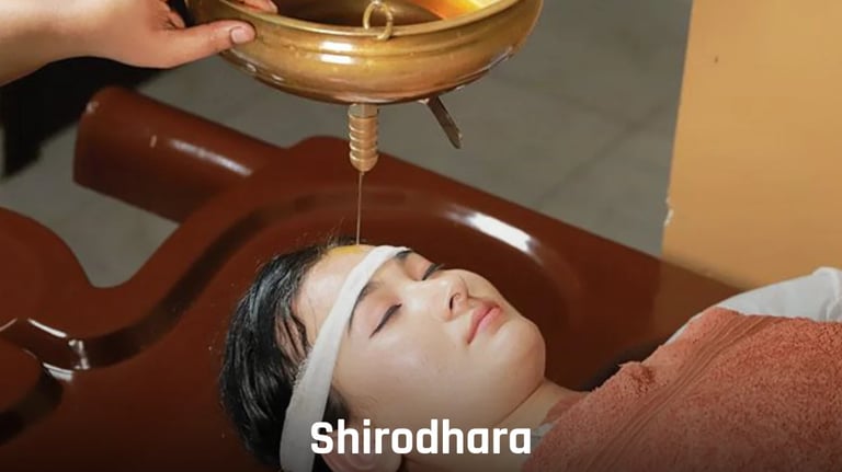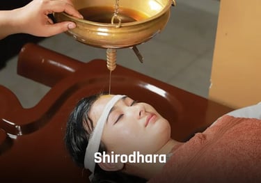 Shirodhara is a traditional Ayurvedic therapy that gently drips medicated oil on the forehead, inducing deep relaxation. It promotes psycho-somatic balance and a meditative calm. This therapy is effective in managing anxiety, hypertension, and stress-related issues.